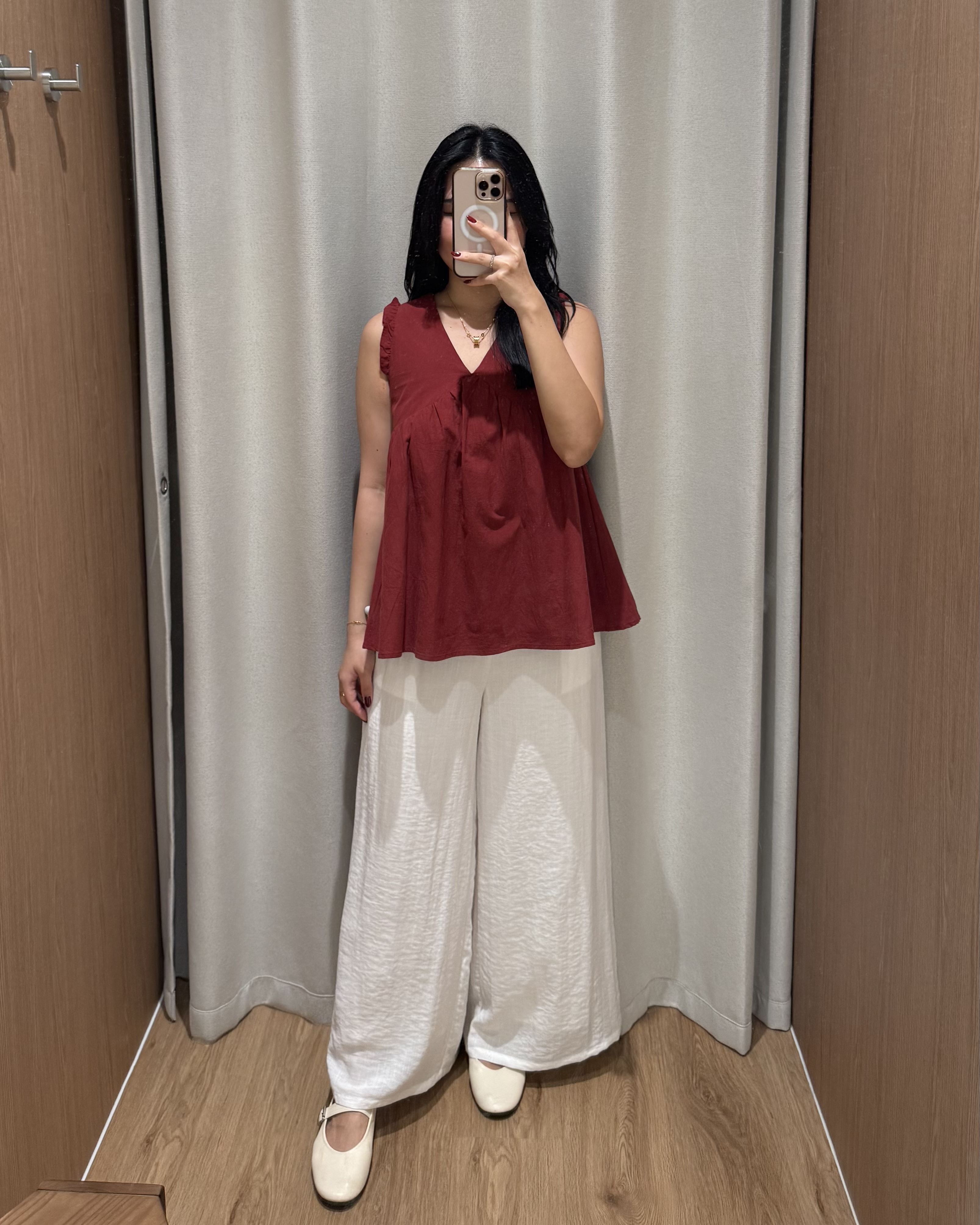 Featuring a long, flared silhouette with a single pleat and a petal-shaped tie waistband inspired by the ginkgo leaf, the Jene Pants are crafted from a soft rayon-blend fabric and fully lined with pure cotton. Two side pockets add practicality, while pairing with the Dovie, Celie, or Estel creates a coordinated co-ord, or they can be styled with other favorites for an easy way to look put-together, whether running errands, meeting friends, or dressing up for special moments.
