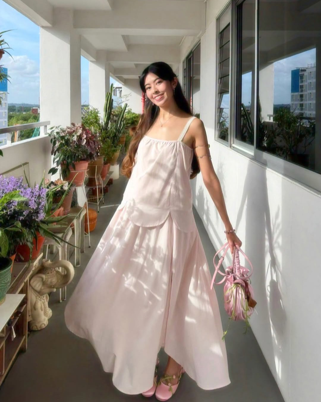 Bring playful sophistication to your look with the Haven Cami. Designed with adjustable button shoulder straps, a petal-gathered hem inspired by the ginkgo leaf, and a four-panel construction, it introduces soft folds and visual interest for a whimsical touch. Crafted from a breathable tencel blend fabric and fully lined with pure cotton, an elasticated back ensures a comfortable, perfect fit. Complete a coordinated look with the Dolce Skirt, or pair with your favorite separates for chic, versatile outfits.